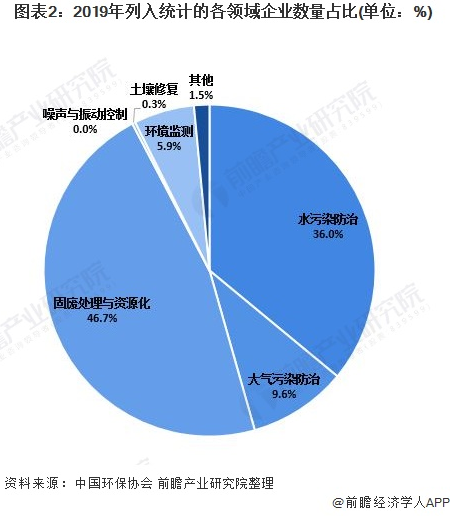 在我国环保产业企业中,水污染防治、环境监测领域企业数量占比较高;水污染防治、固废处置与资源化、大气污染防治3个领域企业的营业收入占比居前列,3个领域企业营业收入之和占比高达88.4%。