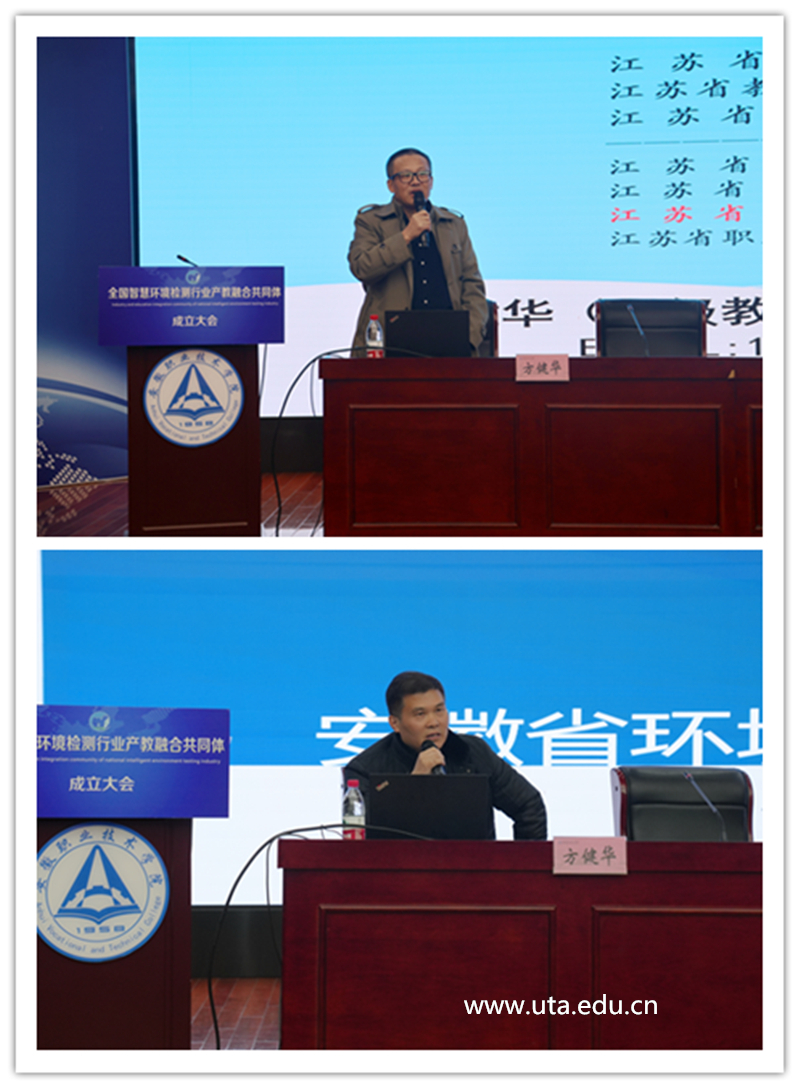学院党委书记李方泽,安徽省教育厅一级主任科员任雯君,安徽678体育环保科技股份有限公司董事长徐辉,安徽环境科技集团股份有限公司党委副书记总经理杨岸峰,合肥工业大学资源与环境学院党委书记南国君,安徽省环境检测行业协会专家委员会主任、中国科技大学教授刘桂建出席会议并致辞,成立大会由党委委员、副院长杨林国主持。