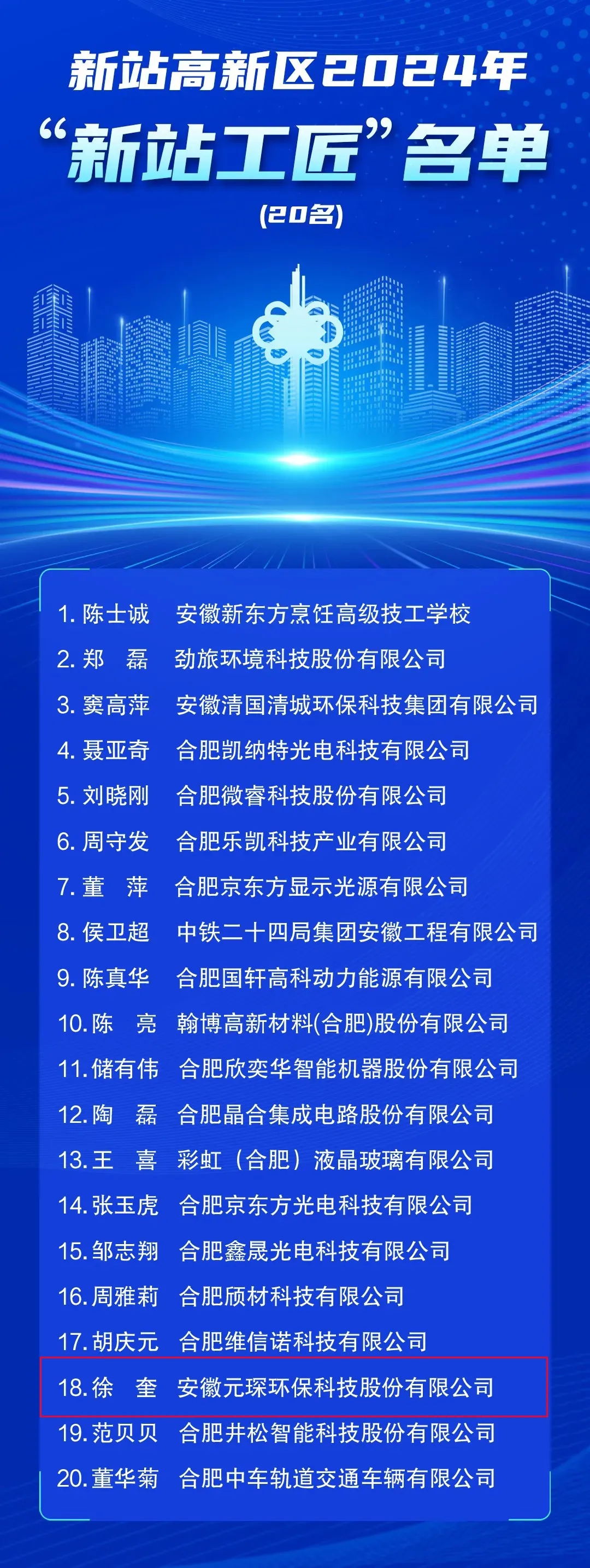 安徽678体育环保科技股份有限公司徐奎成功上榜!