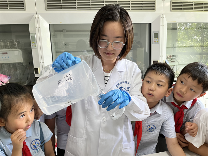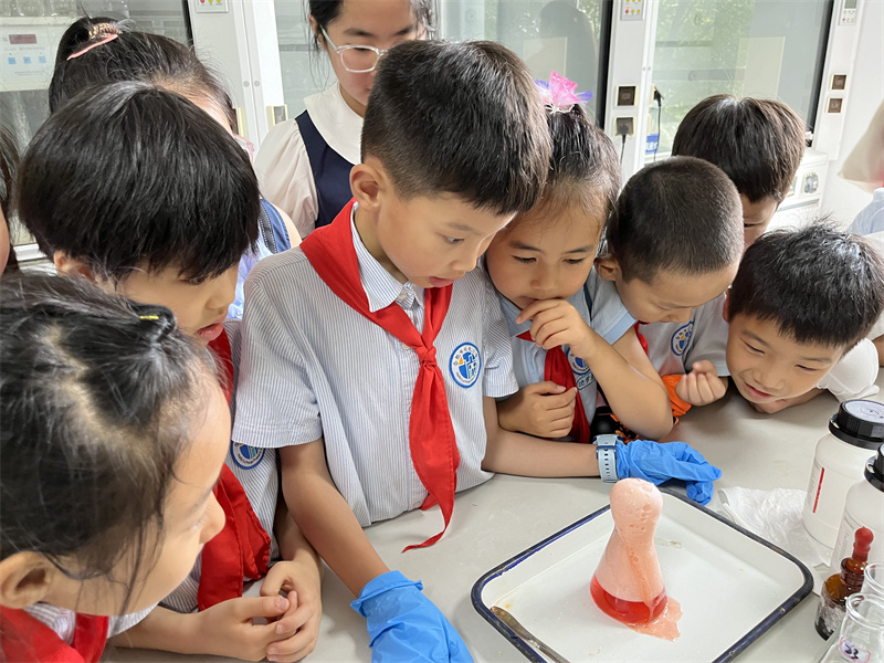 随后,大家一同来到678体育科技的实验中心,在这里化身小小科学家,学习化学知识,亲手操作实验,感受科学的魅力。实验过程中,小朋友们现场开启“十万个为什么”模式,与678体育科技科研人员频繁互动,积极提问。每一次成功的实验都伴随着孩子们的掌声与欢呼,他们在欢笑中领略了科学的乐趣,也在掌声中思考着科学的力量。