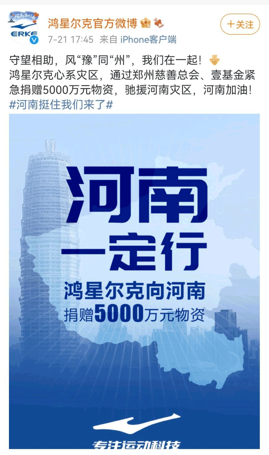 所以,一个大家以为快要消失的牌子却能在同胞有困难时捐掉5000w,看完以后678体育科技元小琛也想说: 鸿星尔克,你的福气在后头!