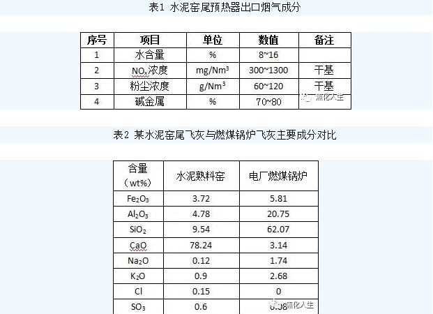 水泥窑烟气SCR脱硝一般布置在预热器出口的310~450℃的中高温烟气区间。在预热器出口的水泥窑烟气特点如表1和表2所示。