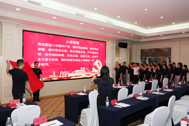 678体育科技党支部于6月29日组织了一次主题为“重温入党誓词 汲取奋进力量”的庆七一建党节党日活动。董事长徐辉、总经理兼党支部书记梁燕,以及全体党员、中高层干部和退役军人,共计50余人参加了此次活动。